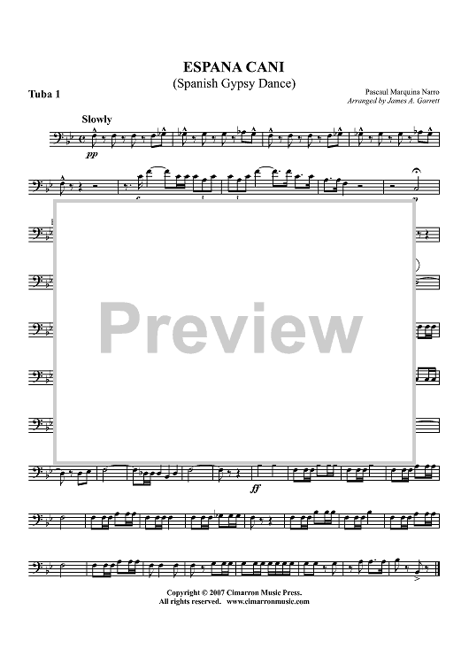 Digital Sheet Music for Espana Cani (Spanish Gypsy Dance) - Tuba 1 by , James Garrett, Pascaul Marquina Narro scored for Tuba Ensemble; id:416715