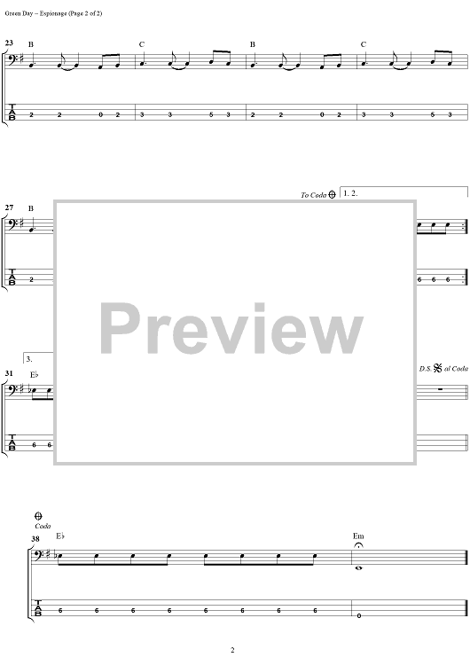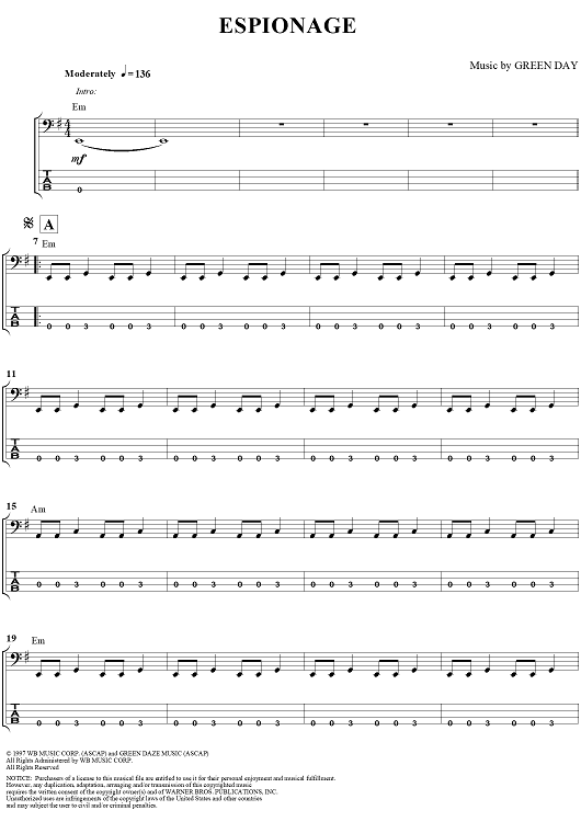 Digital Sheet Music for Espionage by Green Day scored for Bass Tab; id:357807