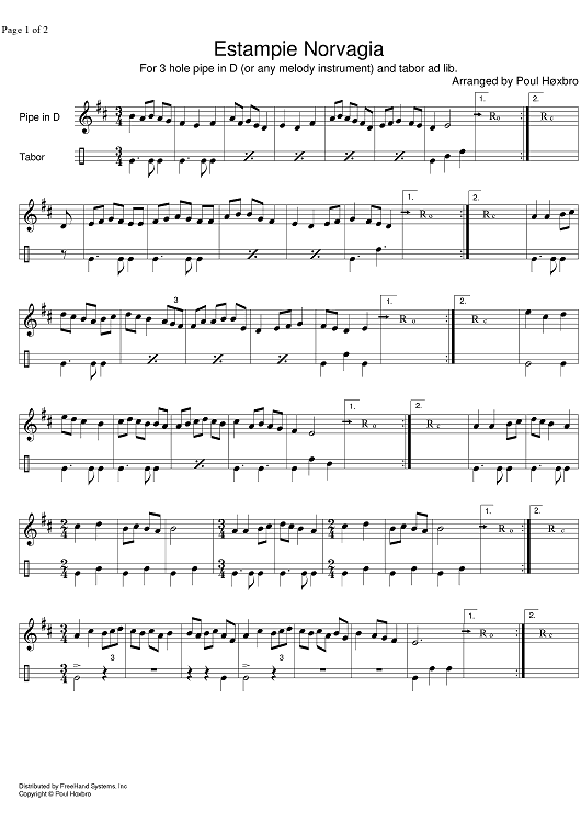 Digital Sheet Music for Estampie Norvagia by , Unknown Writer, Poul Hoxbro scored for D Pipe/Tabor; id:329657