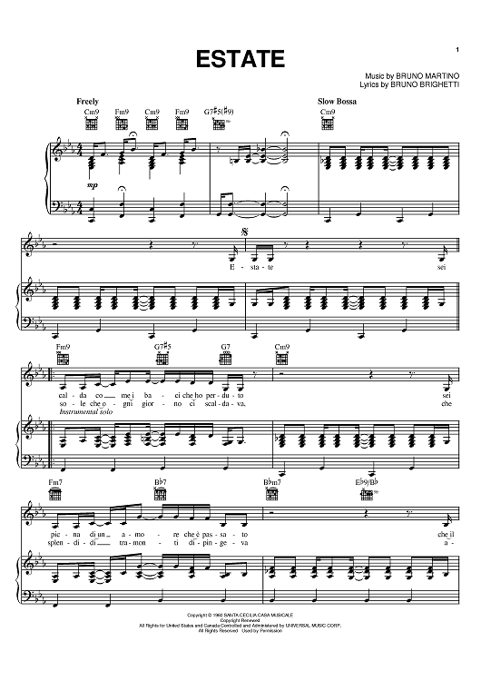 Digital Sheet Music for Estate by Bruno Brighetti, Joao Gilberto, Bruno Martino, John Pizzarelli scored for Piano/Vocal/Chords; id:381826