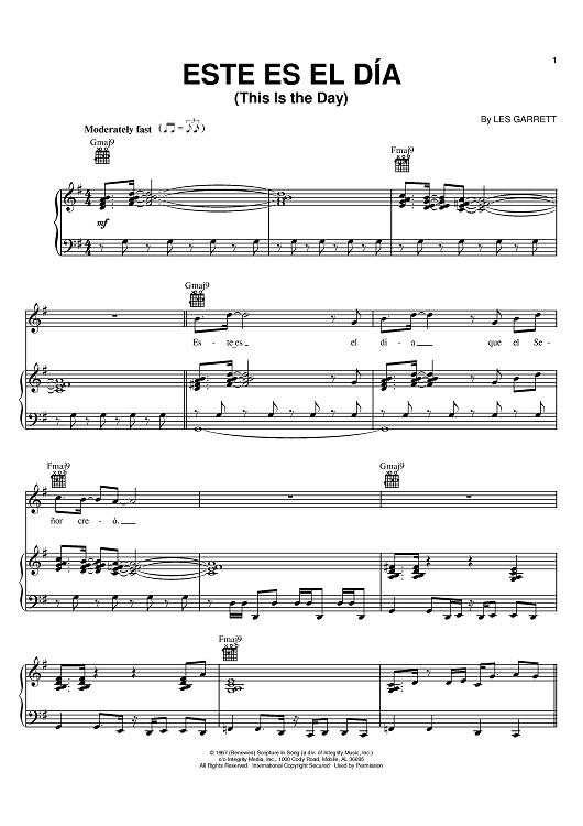 Digital Sheet Music for Este Es El Día (This Is The Day) by Les Garrett scored for Piano/Vocal/Chords; id:387063