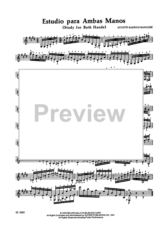 "Estudio para Ambas Manos (Study for Both Hands)" Sheet Music by Agustin Barrios Mangore