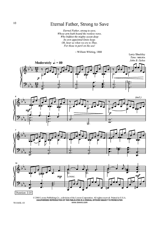 Digital Sheet Music for Eternal Father, Strong to Save by Larry Shackley, John Bacchus Dykes scored for Piano Solo; id:433606