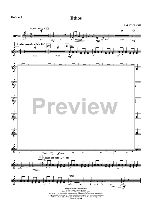 "Ethos - Horn in F" Sheet Music by Larry Clark