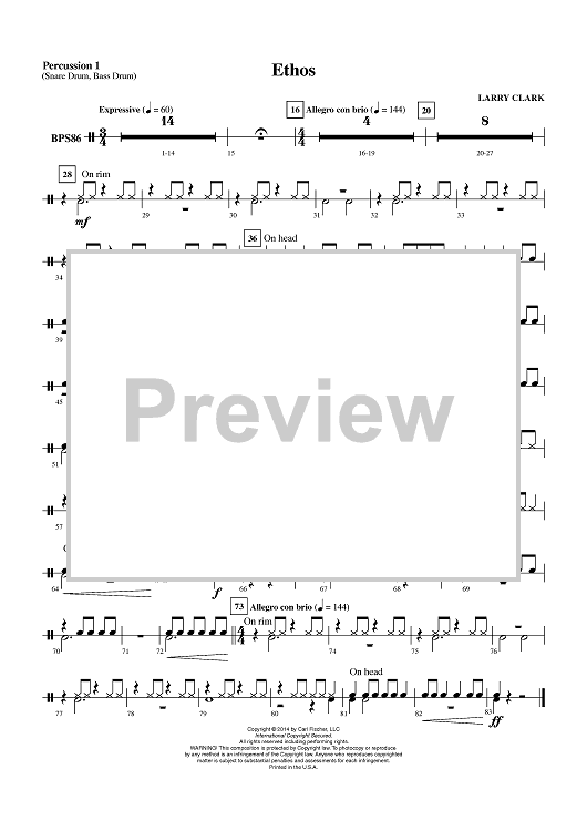 "Ethos - Percussion 1" Sheet Music by Larry Clark