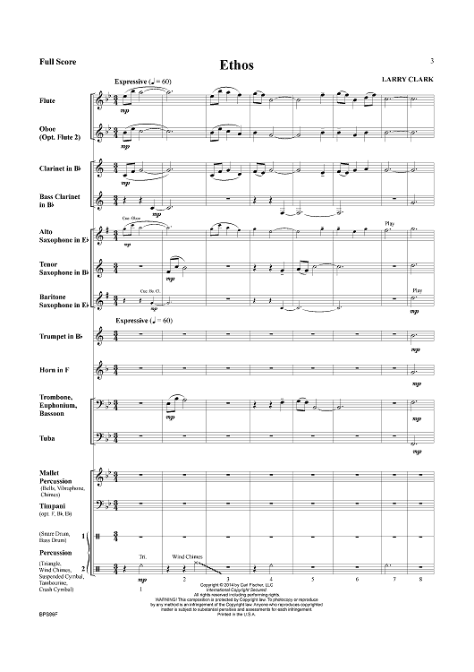 Digital Sheet Music for Ethos - Score by Larry Clark scored for Concert Band; id:450782