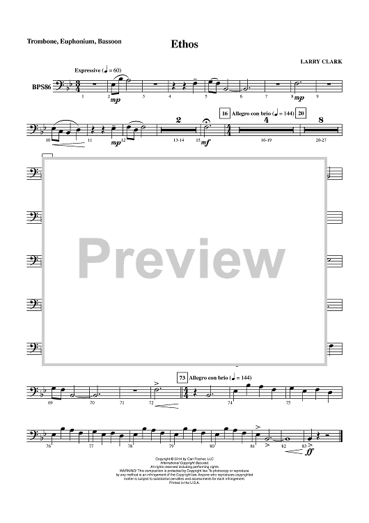 "Ethos - Trombone, Euphonium BC, Bassoon" Sheet Music by Larry Clark