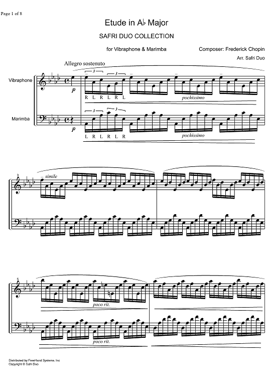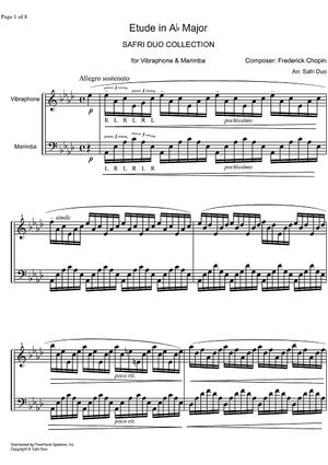Digital Sheet Music for Etude Ab Major by , Frederic Chopin, Safri Duo scored for Marimba/Vibraphone; id:327057