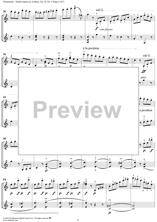 Digital Sheet Music for Etude-Caprice in A Minor, Op. 18, No. 4 by Henryk Wieniawski scored for Two Violins; id:297950