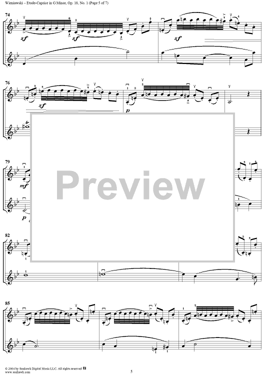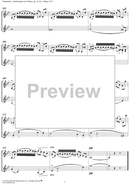 Digital Sheet Music for Etude-Caprice in G Minor, Op. 18, No. 1 by Henryk Wieniawski scored for Two Violins; id:297947