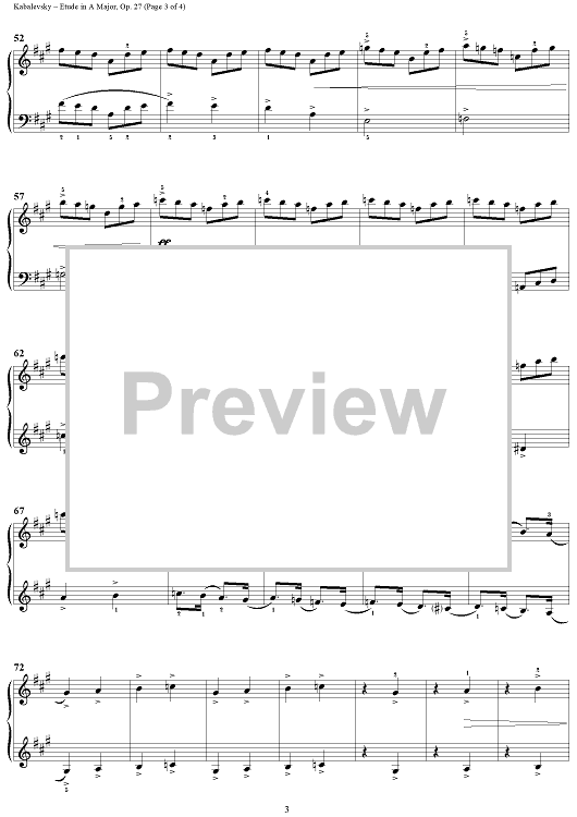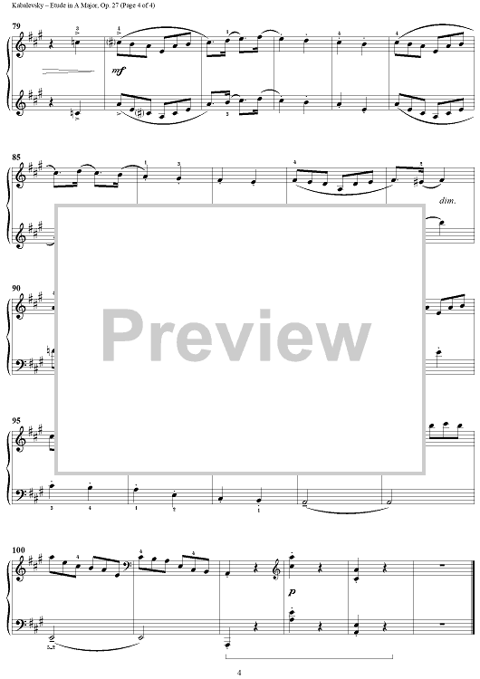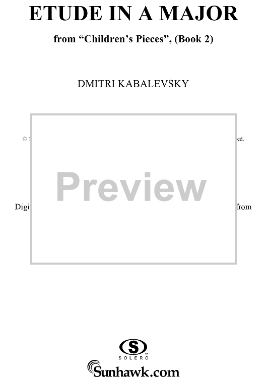 Digital Sheet Music for Etude in A Major by Dmitri Kabalevsky scored for Piano Solo; id:287500