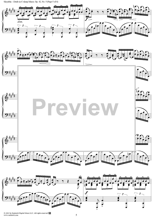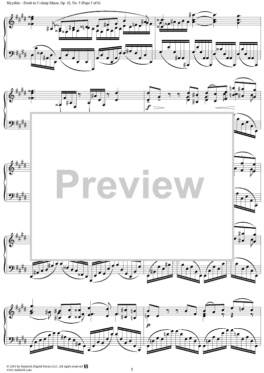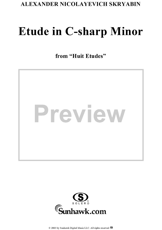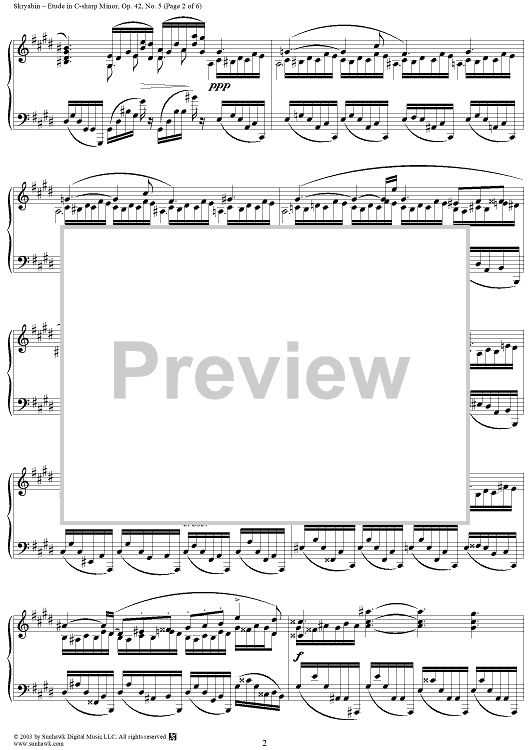 Digital Sheet Music for Etude in C-sharp Minor, Op. 42, No. 5 by Alexander Scriabin scored for Piano Solo; id:293724