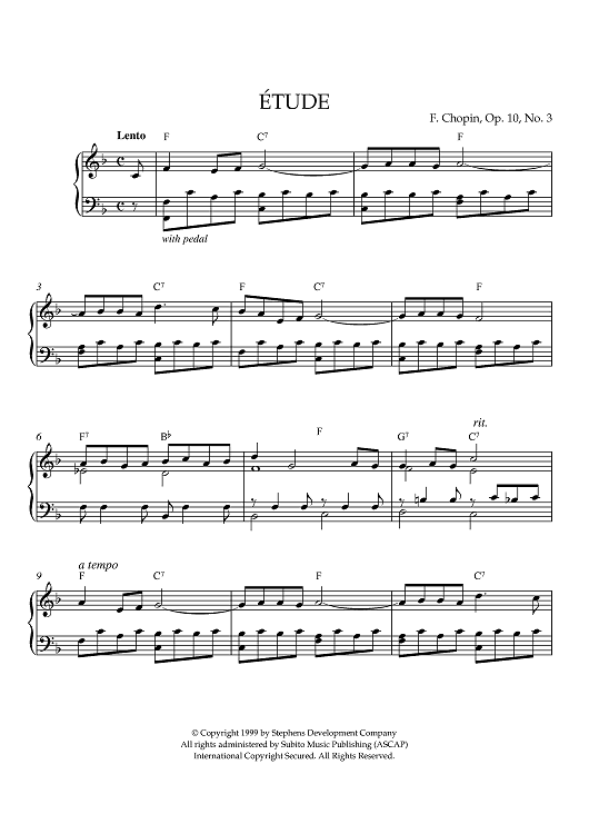Digital Sheet Music for Etude in F Major, Op. 10, No. 3 (originally E Major) by Frederic Chopin scored for Piano; id:369995