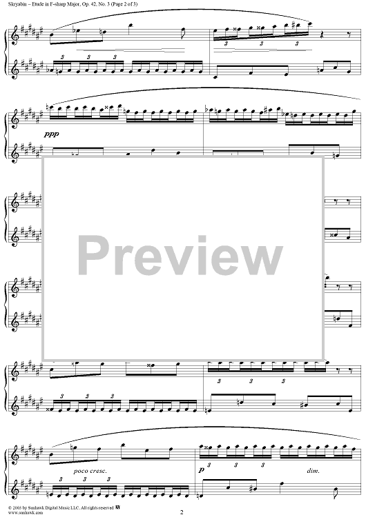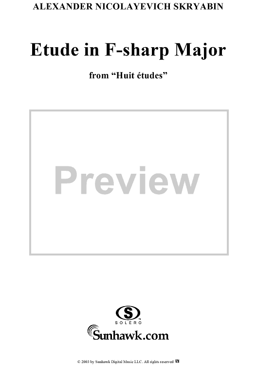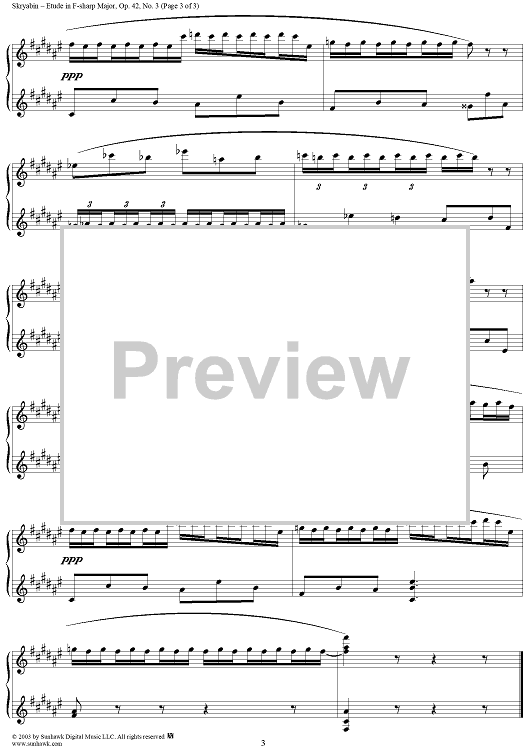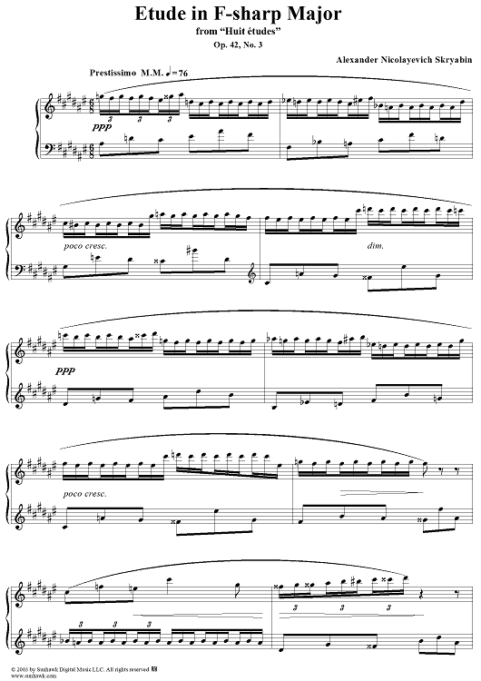 Digital Sheet Music for Etude in F-sharp Major, Op. 42, No. 3 by Alexander Scriabin scored for Piano Solo; id:293722