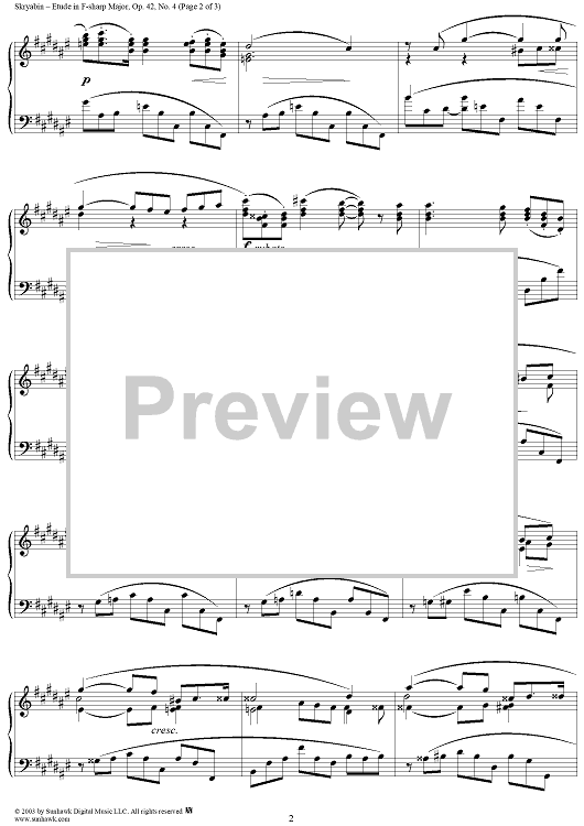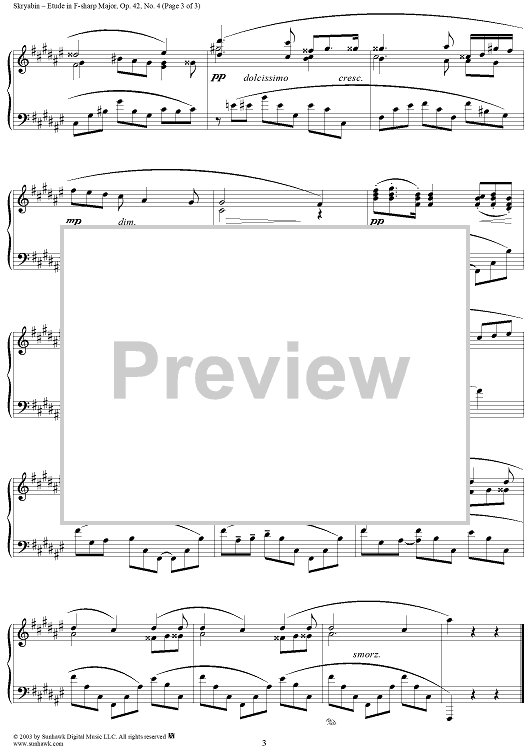 Digital Sheet Music for Etude in F-sharp Major, Op. 42, No. 4 by Alexander Scriabin scored for Piano Solo; id:293723