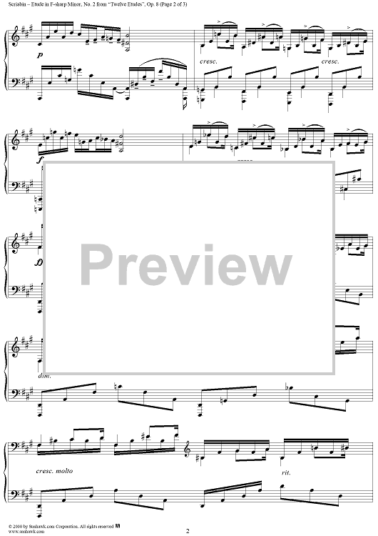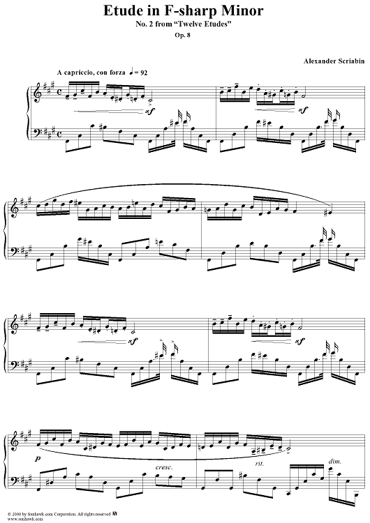 Digital Sheet Music for Etude No. 2 in F-sharp Major by Alexander Scriabin scored for Piano Solo; id:259038