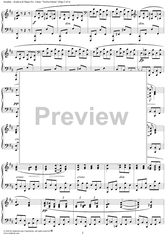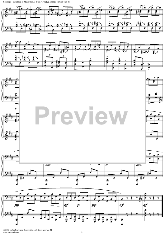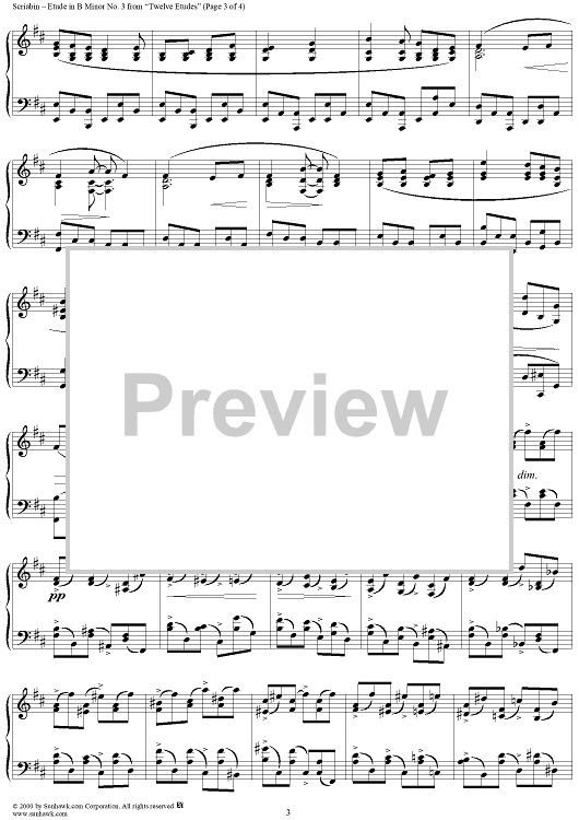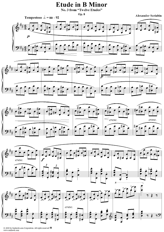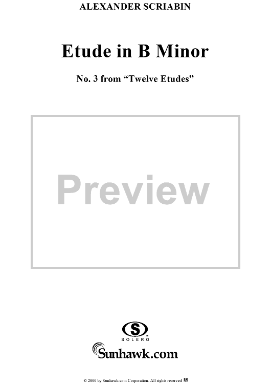 Digital Sheet Music for Etude No. 3 in B Minor by Alexander Scriabin scored for Piano Solo; id:241718