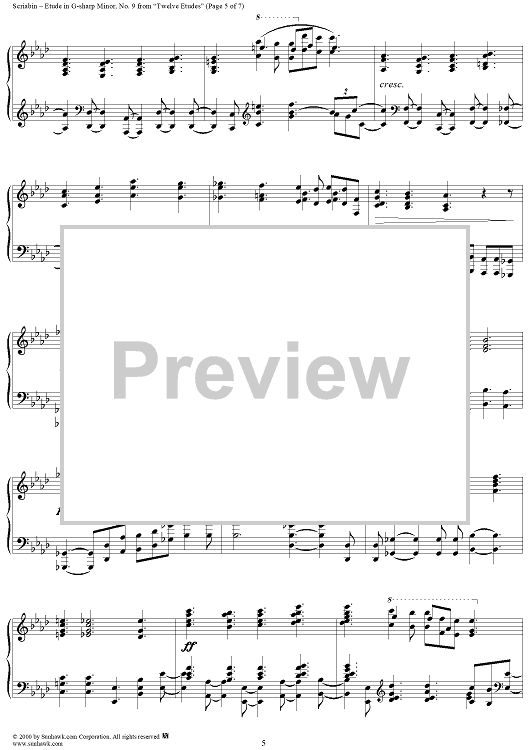 Digital Sheet Music for Etude No. 9 in G-sharp Minor by Alexander Scriabin scored for Piano Solo; id:241722