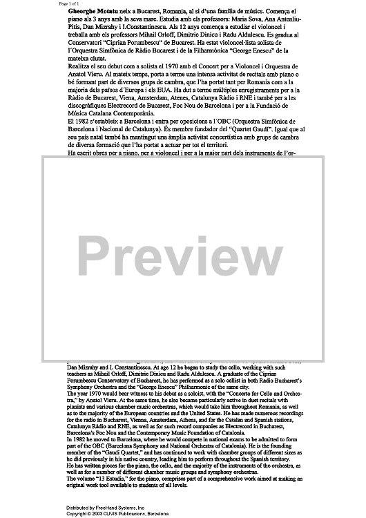 Digital Sheet Music for Etude No.12 G Major from 13 Estudis - Preface by , Gheorge Motatu Steurer scored for Preface; id:353411