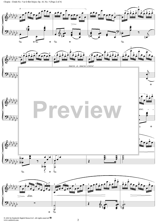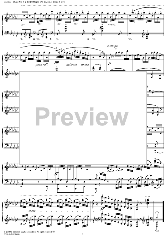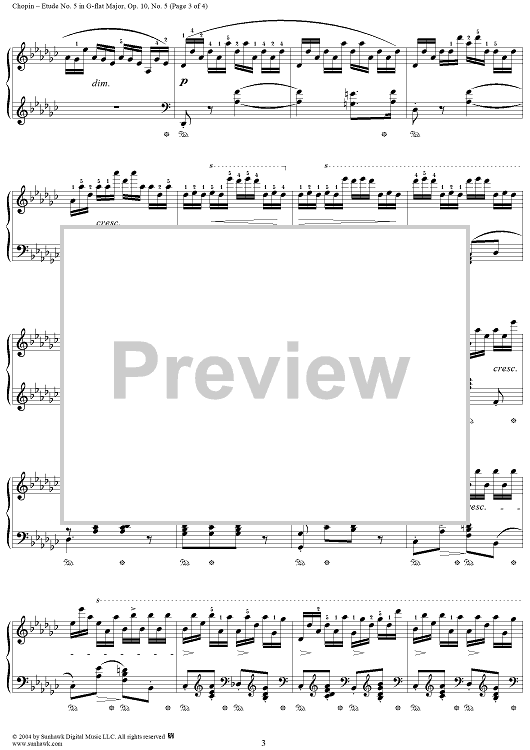 Digital Sheet Music for Etude Op. 10, No. 5 in G-flat Major by Frederic Chopin scored for Piano Solo; id:307285