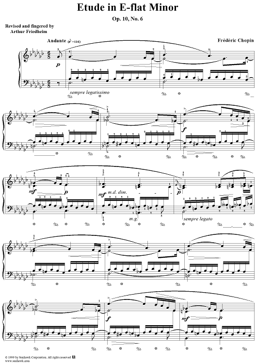 Digital Sheet Music for Etude Op. 10, No. 6 in E-flat Minor by Frederic Chopin, Arthur Friedheim scored for Piano Solo; id:118035