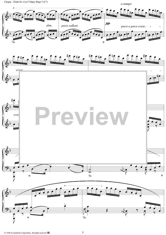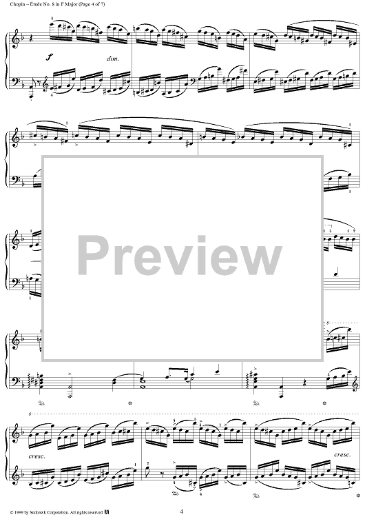 Digital Sheet Music for Etude Op. 10, No. 8 in F Major by Frederic Chopin scored for Piano Solo; id:118067