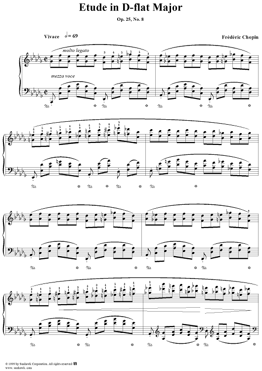 Digital Sheet Music for Etude Op. 25, No. 8 in D-flat Major by Frederic Chopin scored for Piano Solo; id:118107