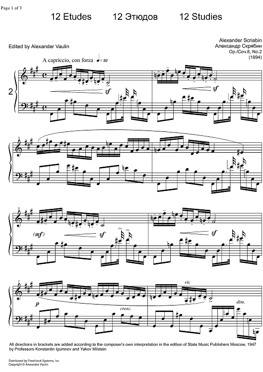 Digital Sheet Music for Etude Op. 8 No. 2 - Piano by , Alexander Scriabin scored for Piano Solo; id:328724