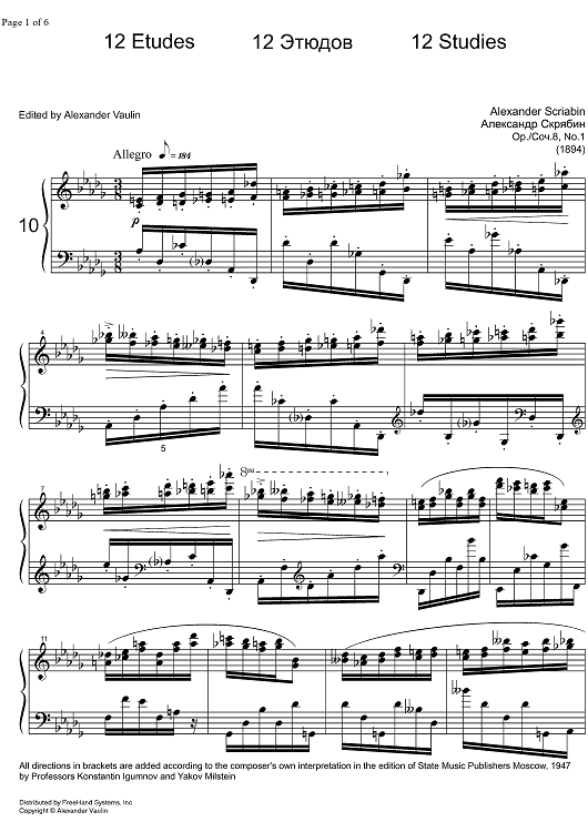 Digital Sheet Music for Etude Op. 8 No.10 - Piano by , Alexander Scriabin scored for Piano Solo; id:328748