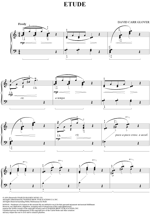 Digital Sheet Music for Etude by David Carr Glover scored for Piano Solo; id:268609