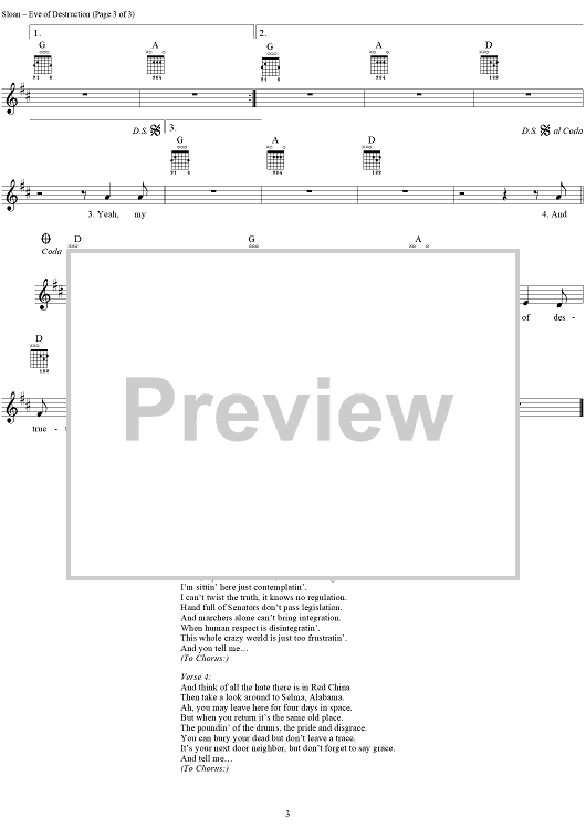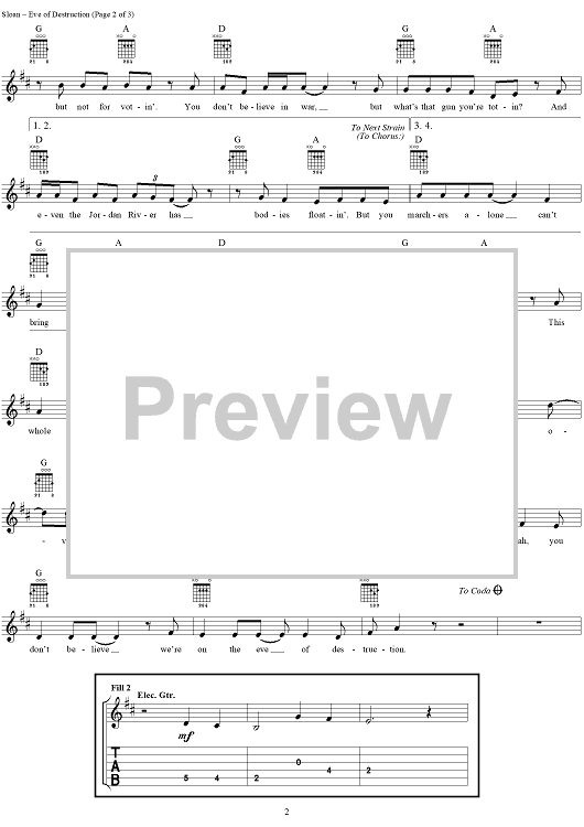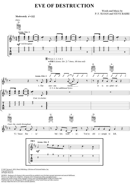 "Eve of Destruction" Sheet Music by Barry McGuire