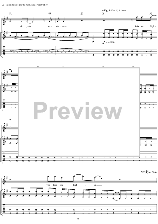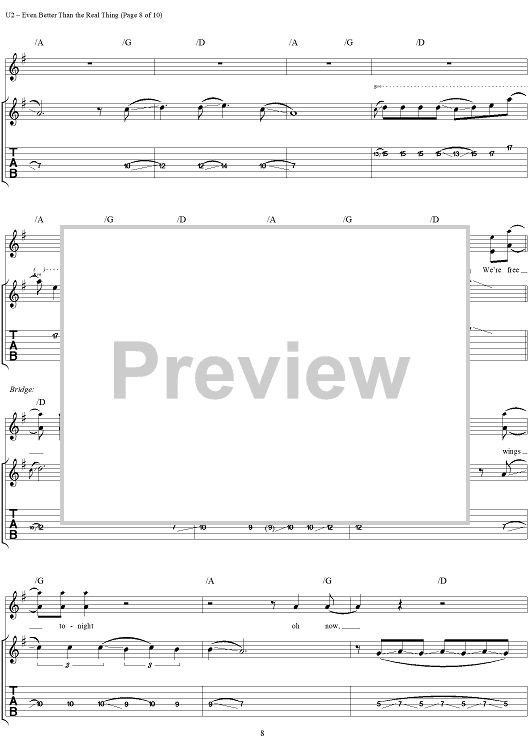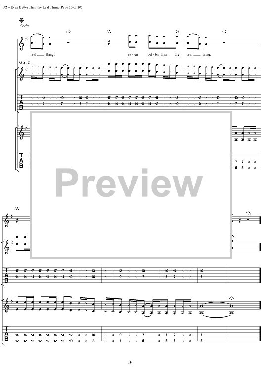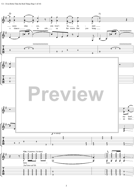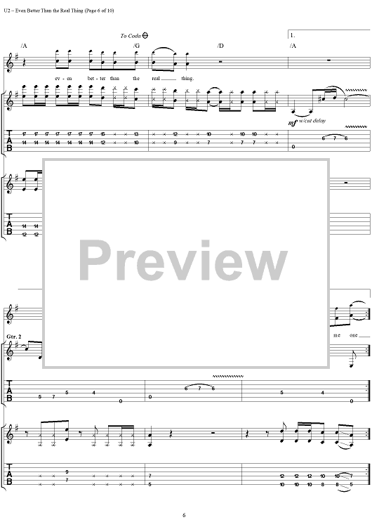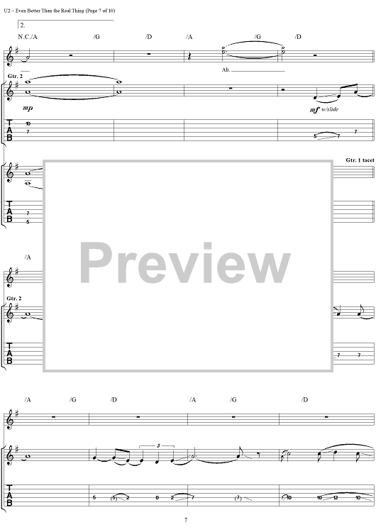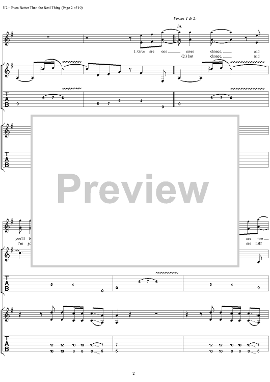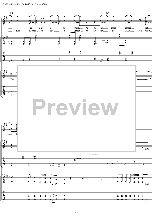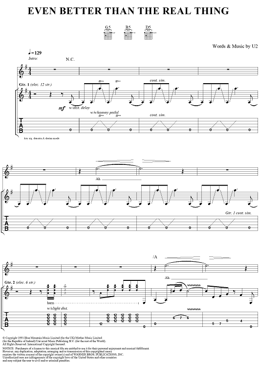 Digital Sheet Music for Even Better Than the Real Thing by U2 scored for Guitar Tab/Vocal; id:296462