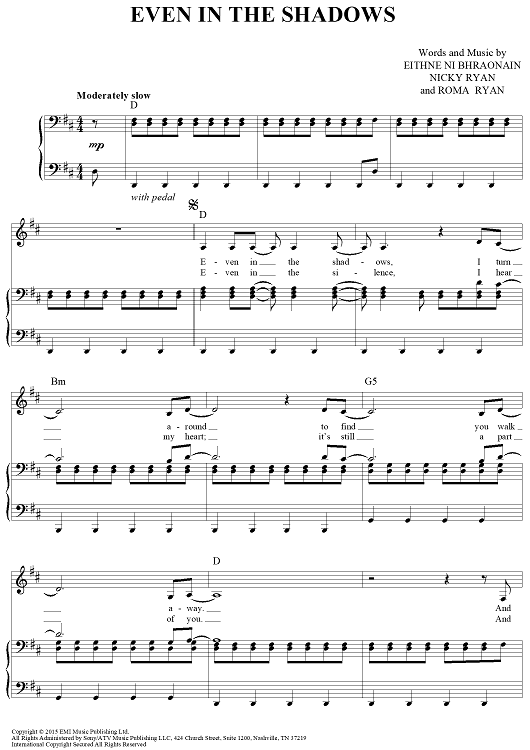 "Even In The Shadows" Sheet Music by Enya