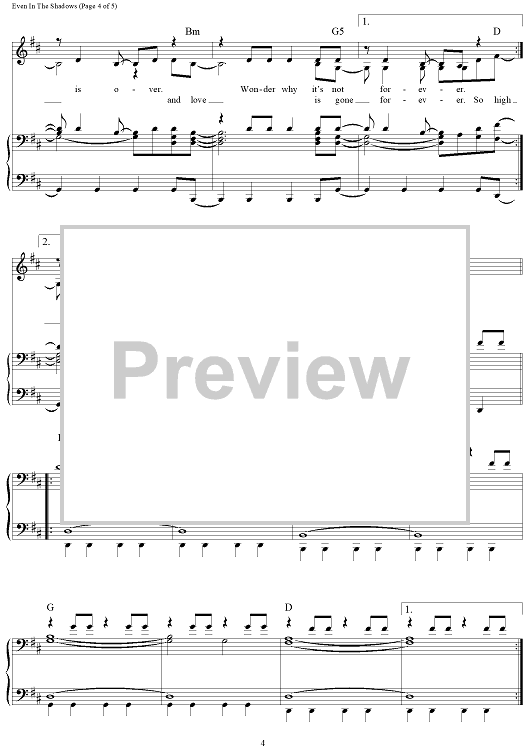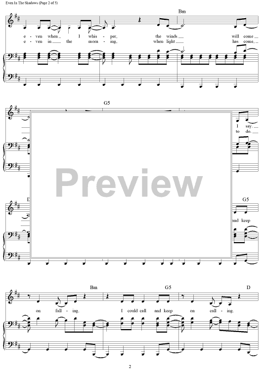 Digital Sheet Music for Even In The Shadows by Enya, Nicky Ryan, Roma Ryan scored for Piano/Vocal/Chords; id:462810