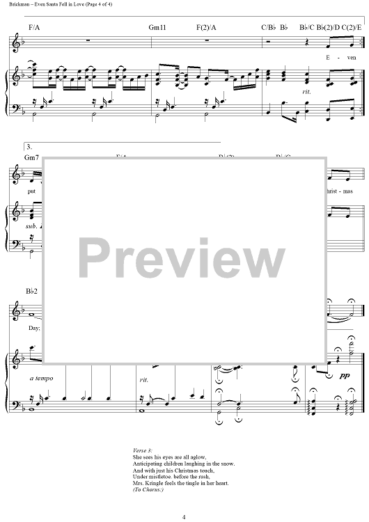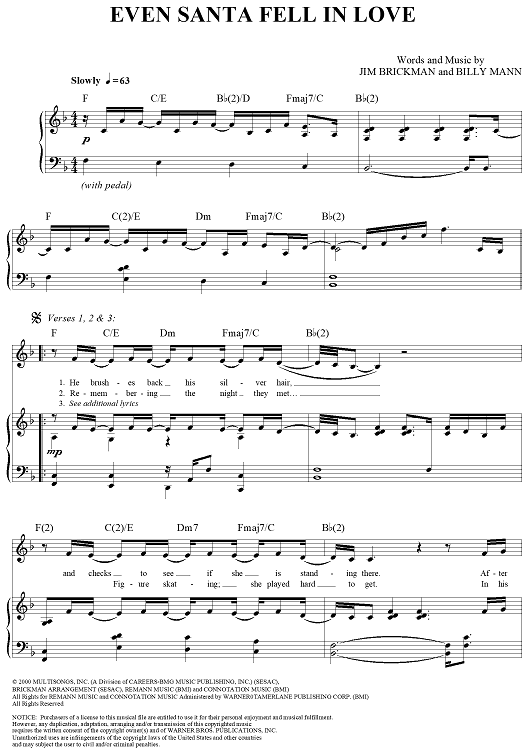 Digital Sheet Music for Even Santa Fell in Love by Jim Brickman, Billy Mann scored for Piano Solo; id:286241