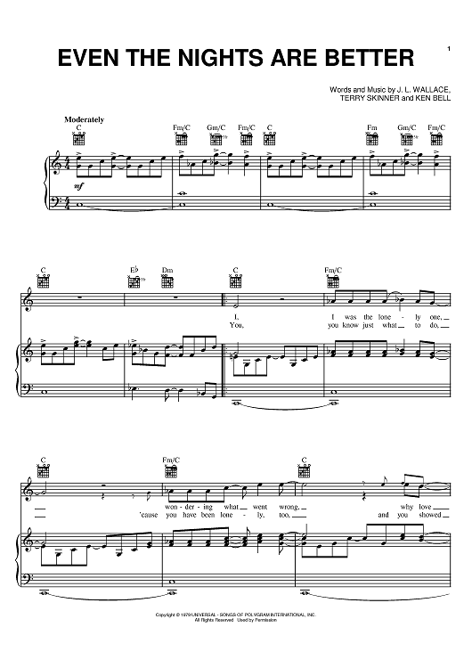 Digital Sheet Music for Even The Nights Are Better by Air Supply, Ken Bell, Terry Skinner, J. L. Wallace scored for Piano/Vocal/Chords; id:381337