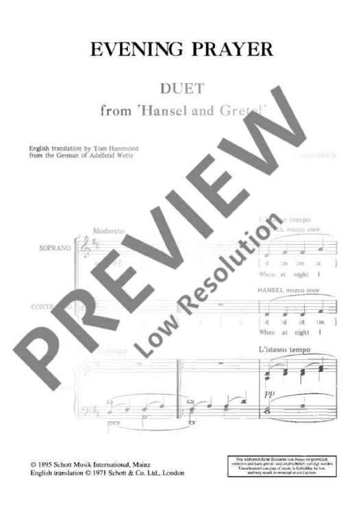 Digital Sheet Music for Evening Prayer by Engelbert Humperdinck scored for Voice And Piano; id:474371
