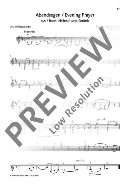 Digital Sheet Music for Evening Prayer by Engelbert Humperdinck, Wolfgang Birtel scored for Violin And Piano; id:488944