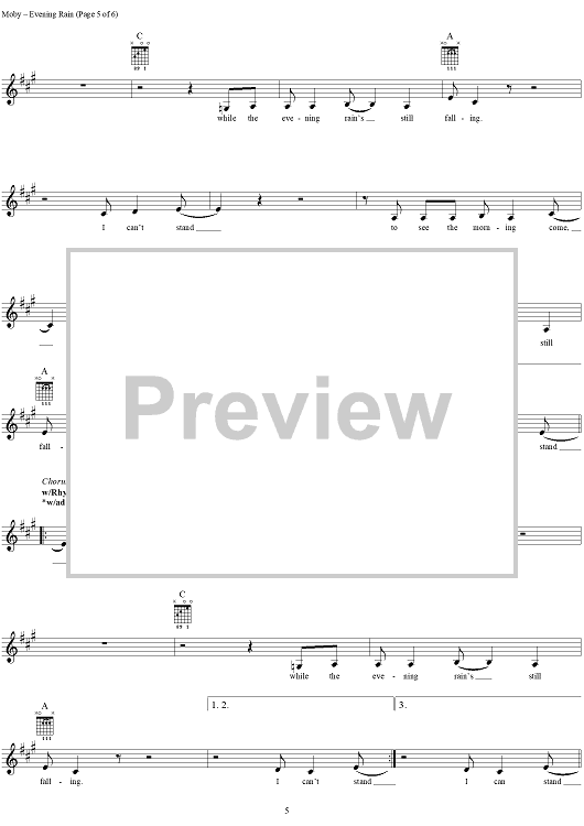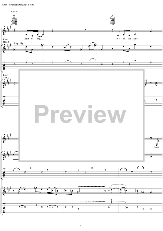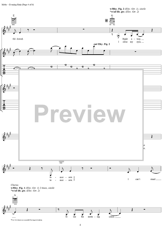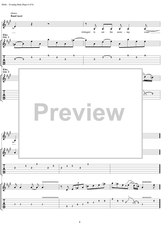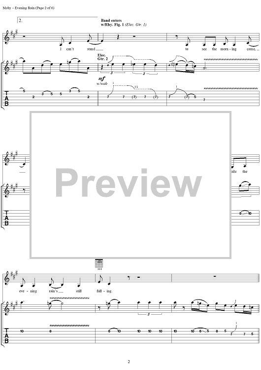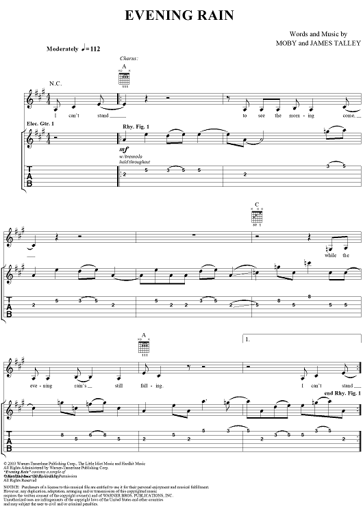 Digital Sheet Music for Evening Rain by Moby, James Talley scored for Guitar Tab/Vocal; id:297324