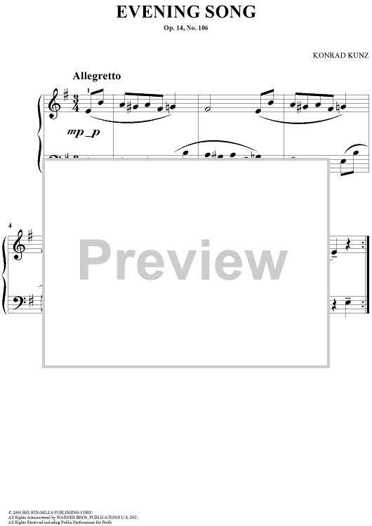 Digital Sheet Music for Evening Song by , Konrad Max Kunz scored for Easy Piano; id:295799
