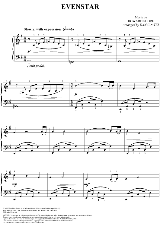 Digital Sheet Music for Evenstar by Dan Coates, Howard Shore scored for Easy Piano; id:362523
