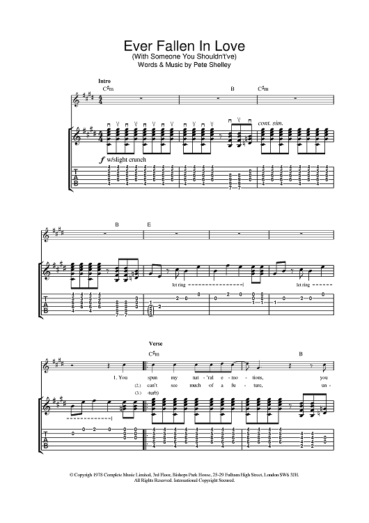 Digital Sheet Music for Ever Fallen In Love by Buzzcocks, Pete Shelley scored for Guitar Tab; id:377559