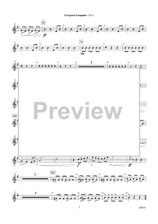 Digital Sheet Music for Evergreen Escapades - Bb Clarinet 1 by Adrian B. Sims scored for Concert Band; id:498628