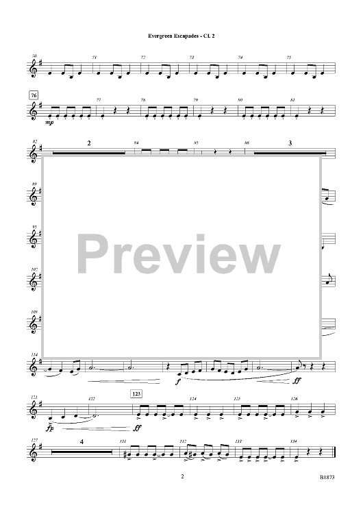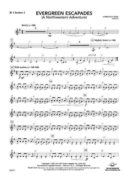 Digital Sheet Music for Evergreen Escapades - Bb Clarinet 2 by Adrian B. Sims scored for Concert Band; id:498629
