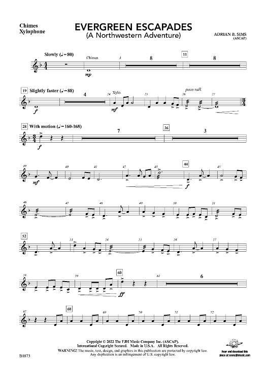 Digital Sheet Music for Evergreen Escapades - Chimes / Xylophone by Adrian B. Sims scored for Concert Band; id:498646