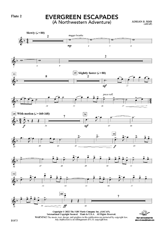 "Evergreen Escapades - Flute 2" Sheet Music by Adrian B. Sims