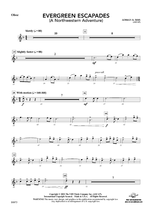"Evergreen Escapades - Oboe" Sheet Music by Adrian B. Sims