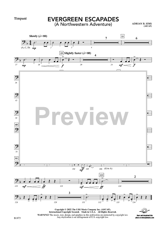 "Evergreen Escapades - Timpani" Sheet Music by Adrian B. Sims
