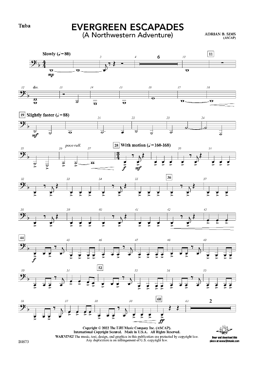 "Evergreen Escapades - Tuba" Sheet Music by Adrian B. Sims