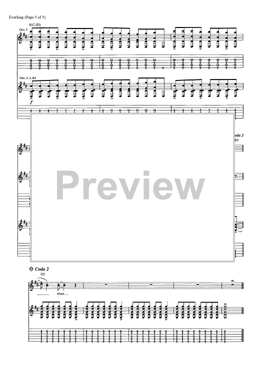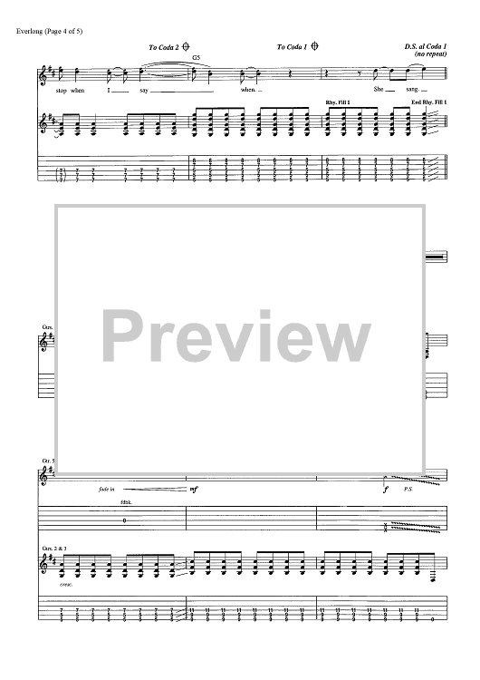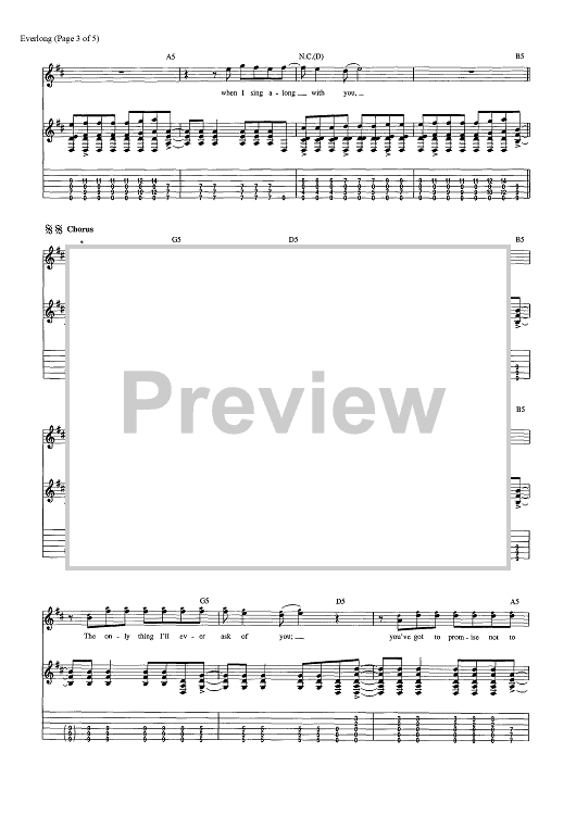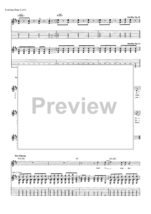 Digital Sheet Music for Everlong by Foo Fighters, Dave Grohl scored for Guitar Tab/Vocal/Chords; id:456891
